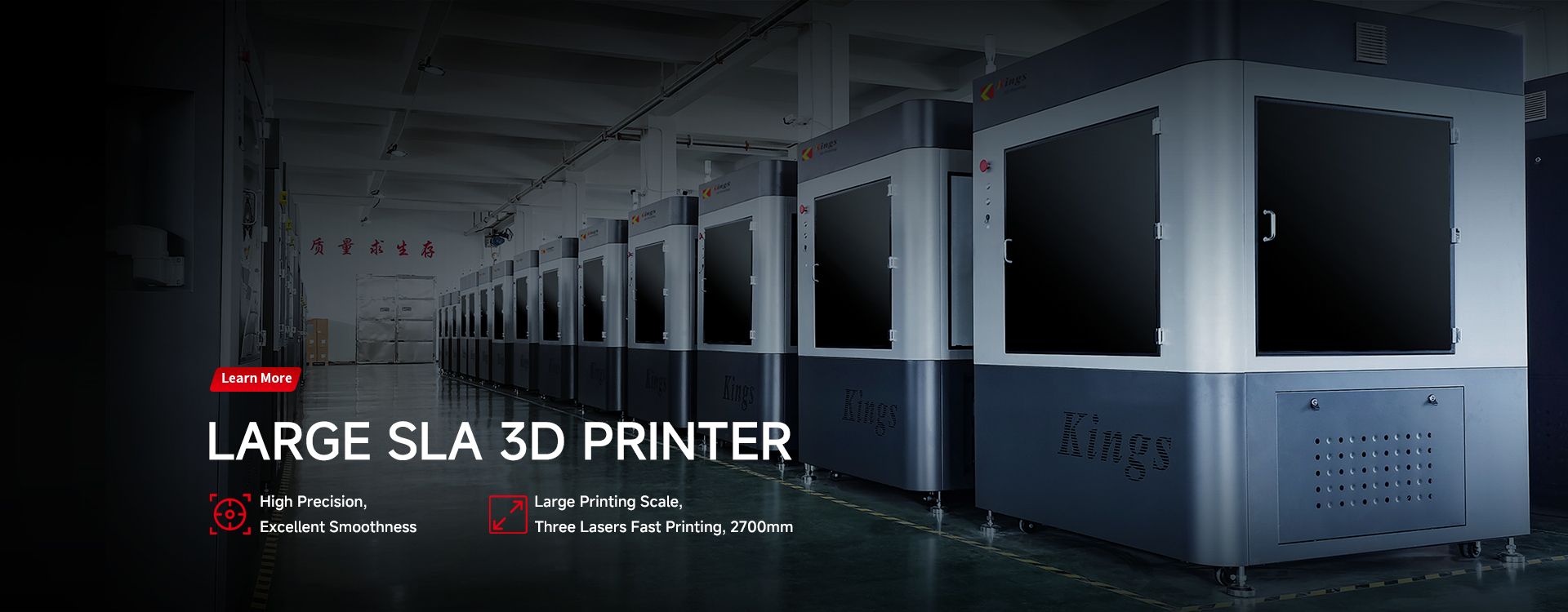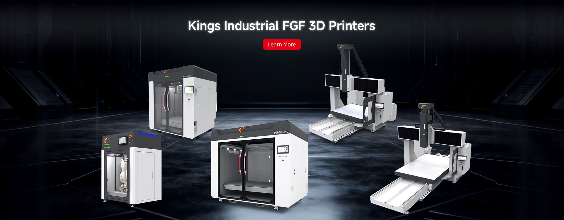 Kings 3D manufactures six types of 3D printers, including SLA, SLM, SLS, FGF, DLP, and FDM models.