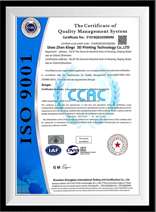 Founded in 2008 as Shantou Kings, Kings 3D has grown into a leading force in the 3D printing industry. With the establishment of Kings 3D in Shenzhen in 2015, the company pioneered a standardized 3D printer production base and began advancing research into 3D printing materials. Over the years, Kings 3D has expanded its offerings to include a wide range of innovative 3D printers and materials, positioning itself as a key player in industries such as aerospace, automotive, healthcare, and more.
